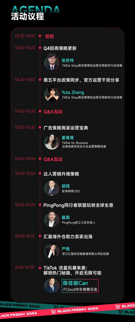 最后,让我们回归到 2024 TikTok Shop 黑五动员会这个话题。本次动员大会可谓看点满满,皆由行业资深人士发表极具价值的干货内容。让我们一起满心期待吧!